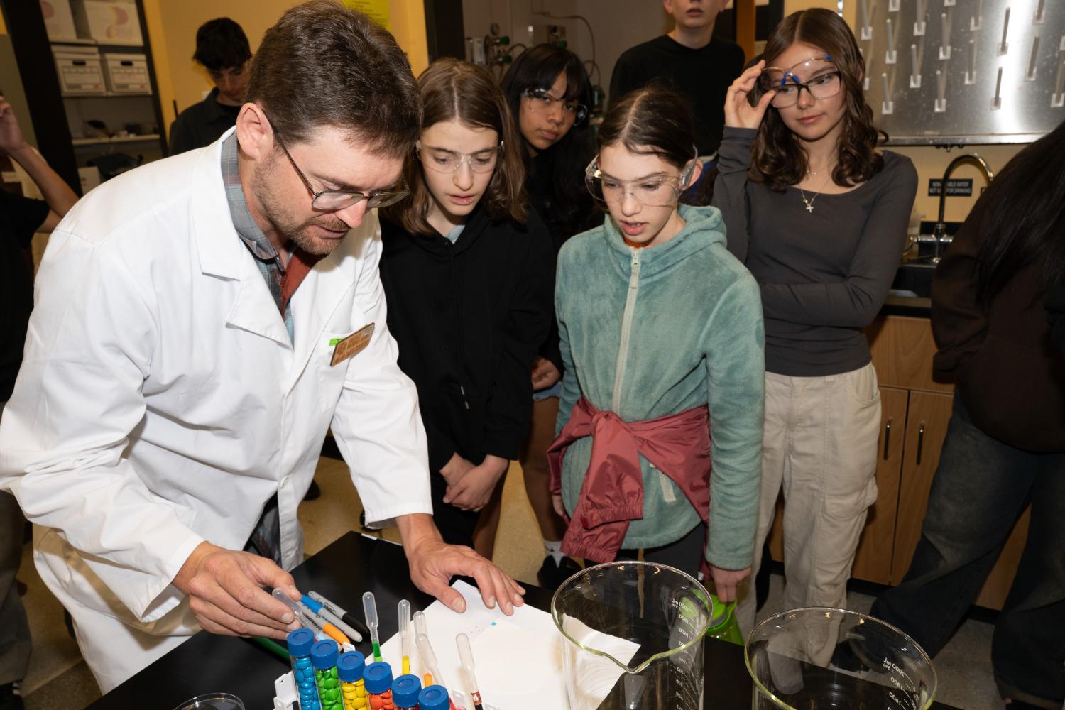 Earlier this month, Organic Geochemistry Laboratory manager Lennart van Maldegem posed a question to a group of eighth graders from behind a table jumbled with jars of candy, food coloring and pipettes.
