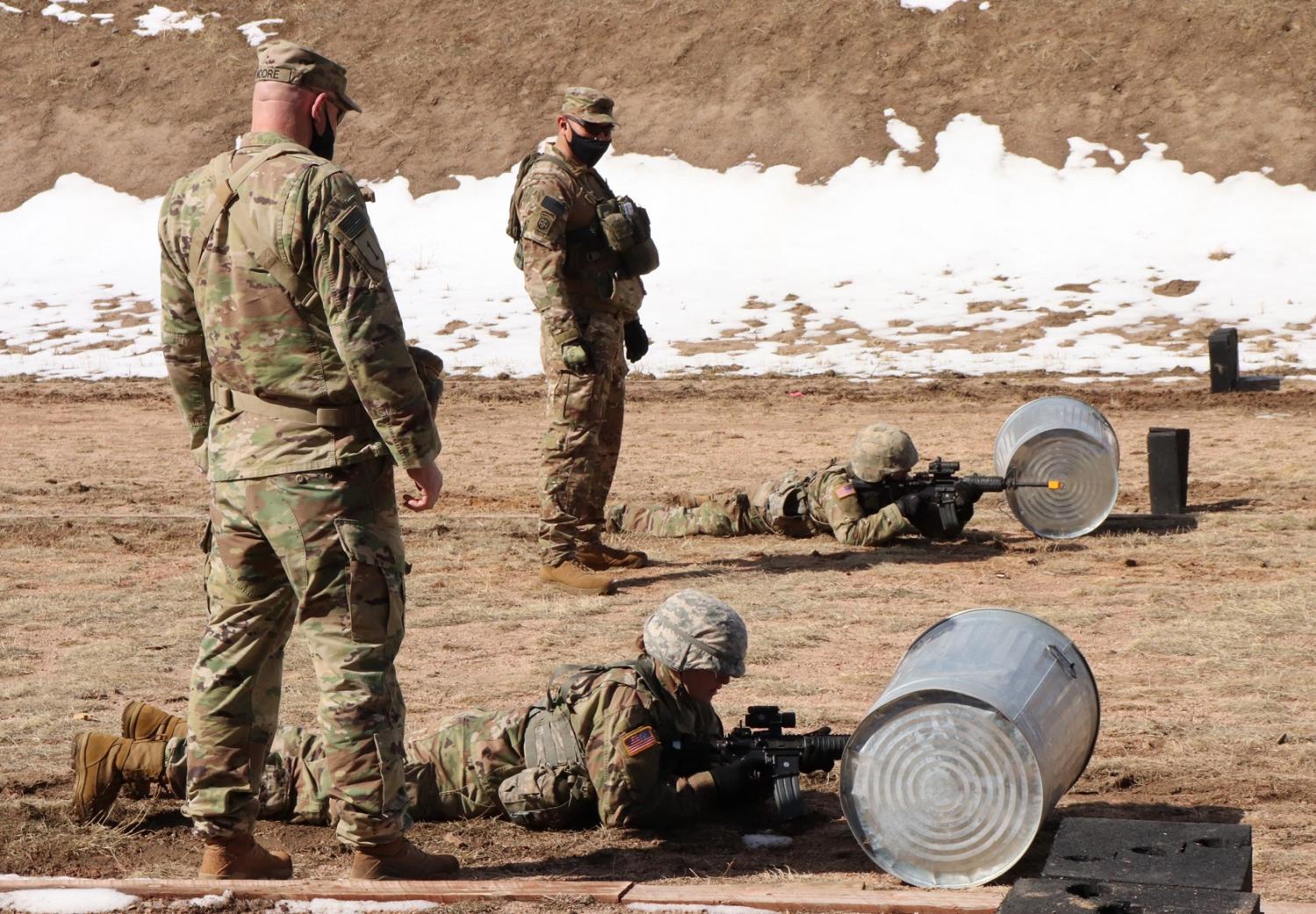 MSG Camarillo and SFC Moore of Colorado State University review and instruct two Cadets on cover fire. Photo courtesy of Cadet Garret Beck.