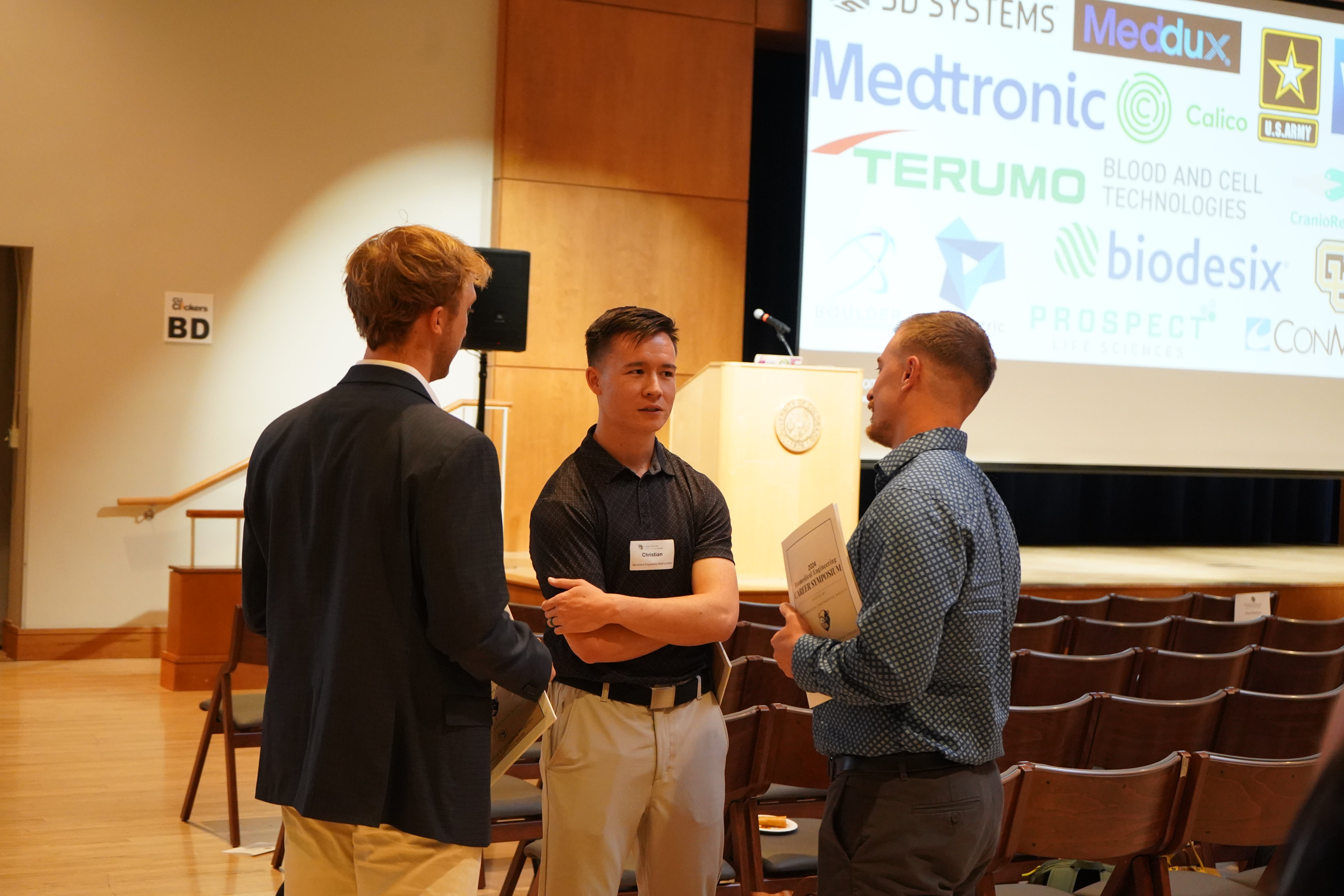 Several years ago, students in the Biomedical Engineering Program sought to fill a need and turned to the leadership of the Biomedical Engineering Student Society (BMES) for assistance. While CU has robust Career Services offerings, the career fairs had not attracted many companies from the biotechnology/biomechanics/medical technology fields, areas of extreme interest for students in the Biomedical Engineering Program. In response, the BMES leaders put together their own career fair with the help of the Biomedical Engineering (BME) Program.