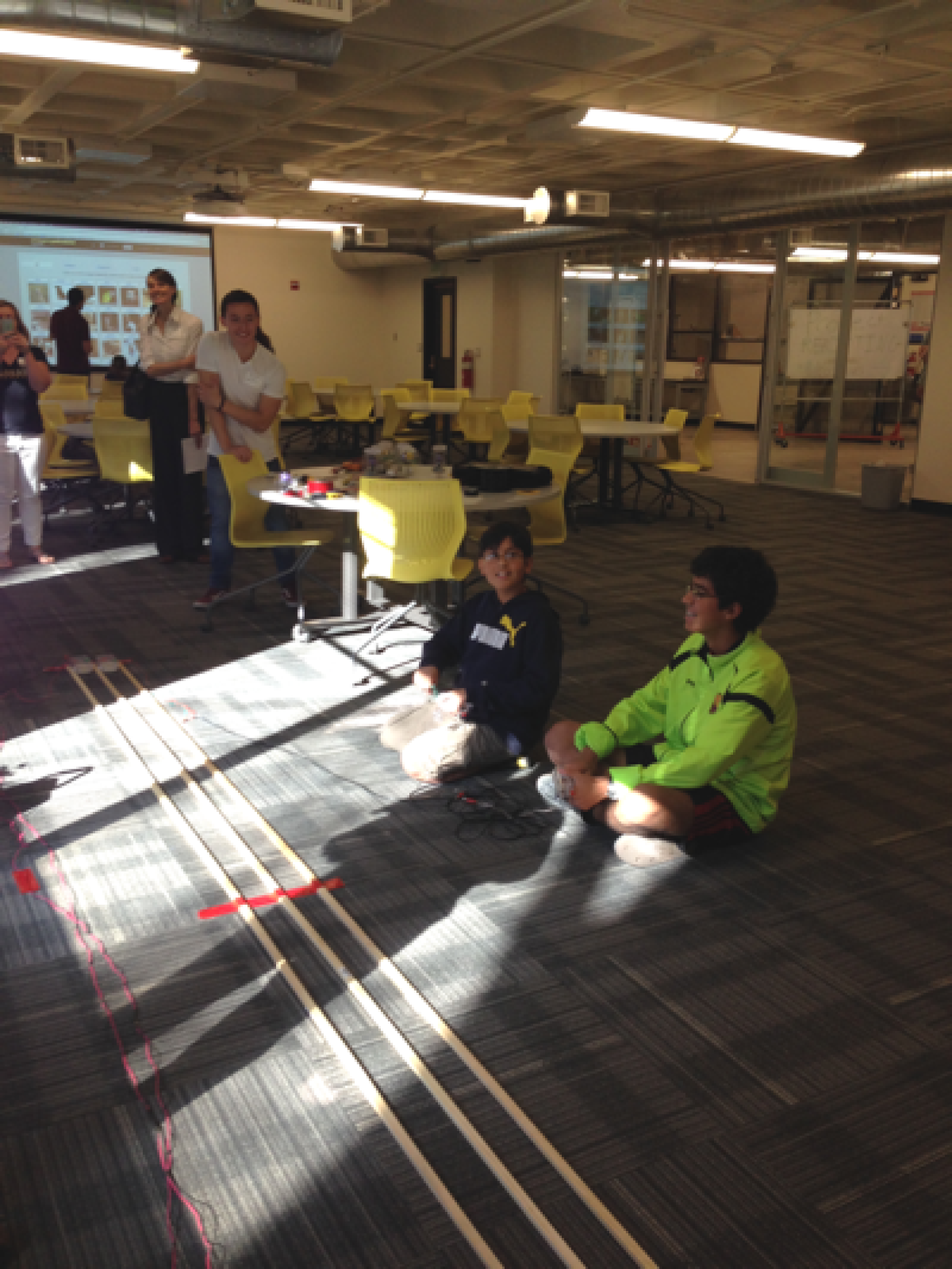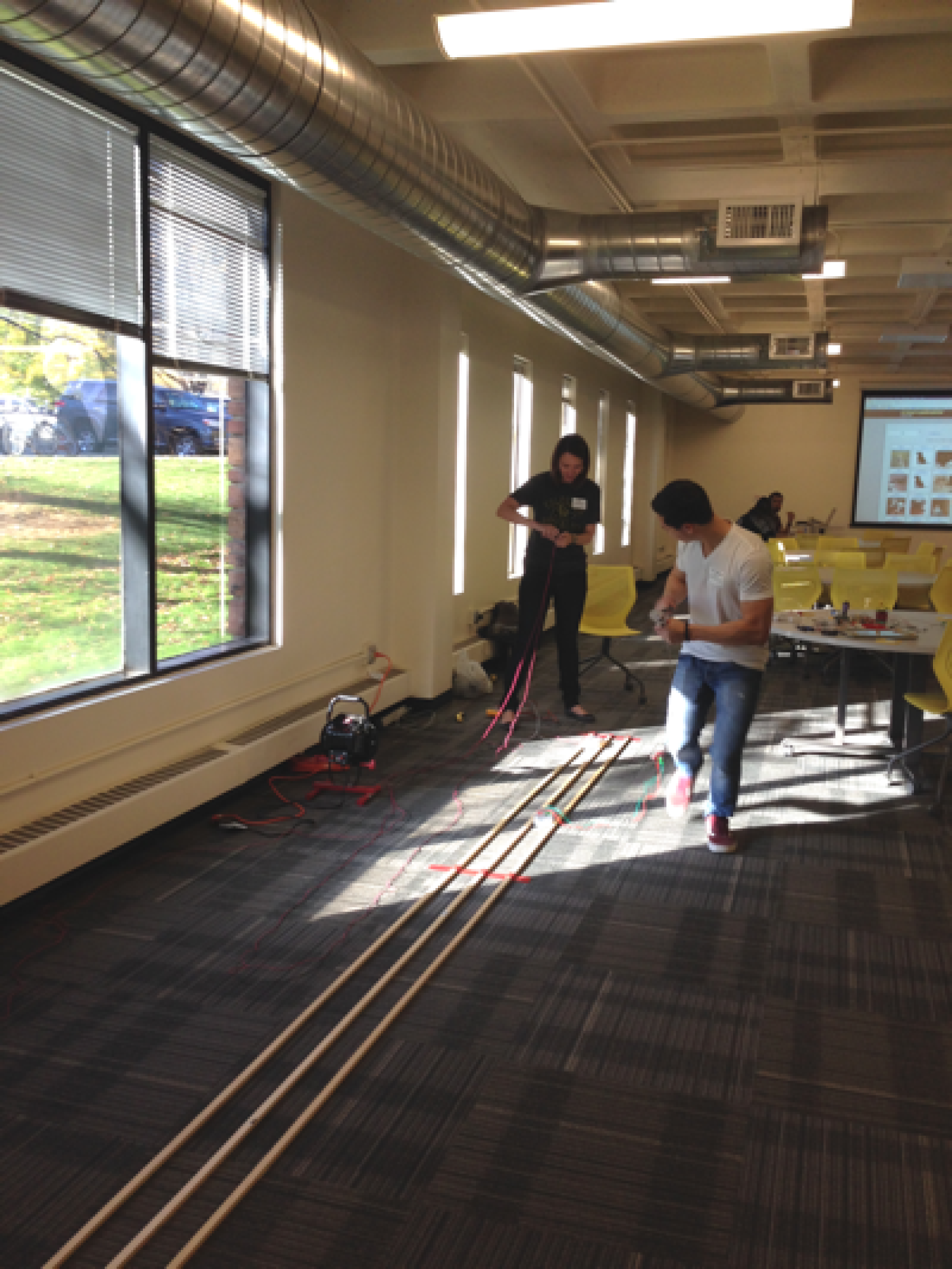 As part of CU's Homecoming Weekend 2014 we held a "Race the Sun" interactive demonstration at the Idea Forge. During this event, participants (students of all ages) could test their skills at propelling an electric car down a track with a small hand-crank generator. The car was pitted against a solar-powered one that was connected to various types of photovoltaic panels aimed at the sun. Do you think you could beat the sun???